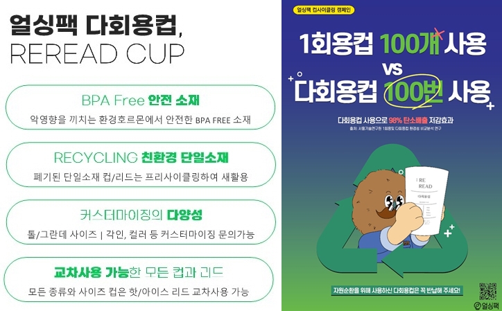 이에 얼싱팩은 어디서든 편리하게 다회용컵으로