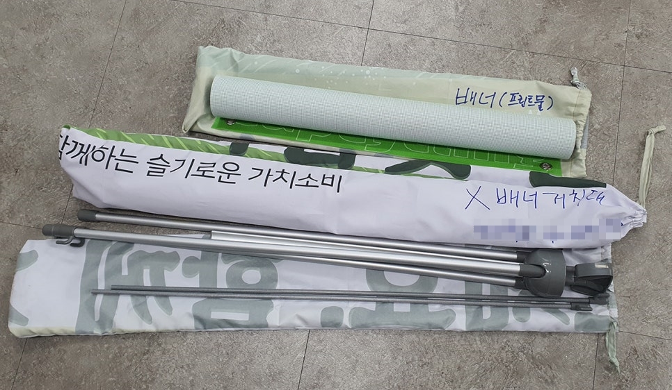 건축자재와 의류, 가방, 파우치, 캠핑용품 등